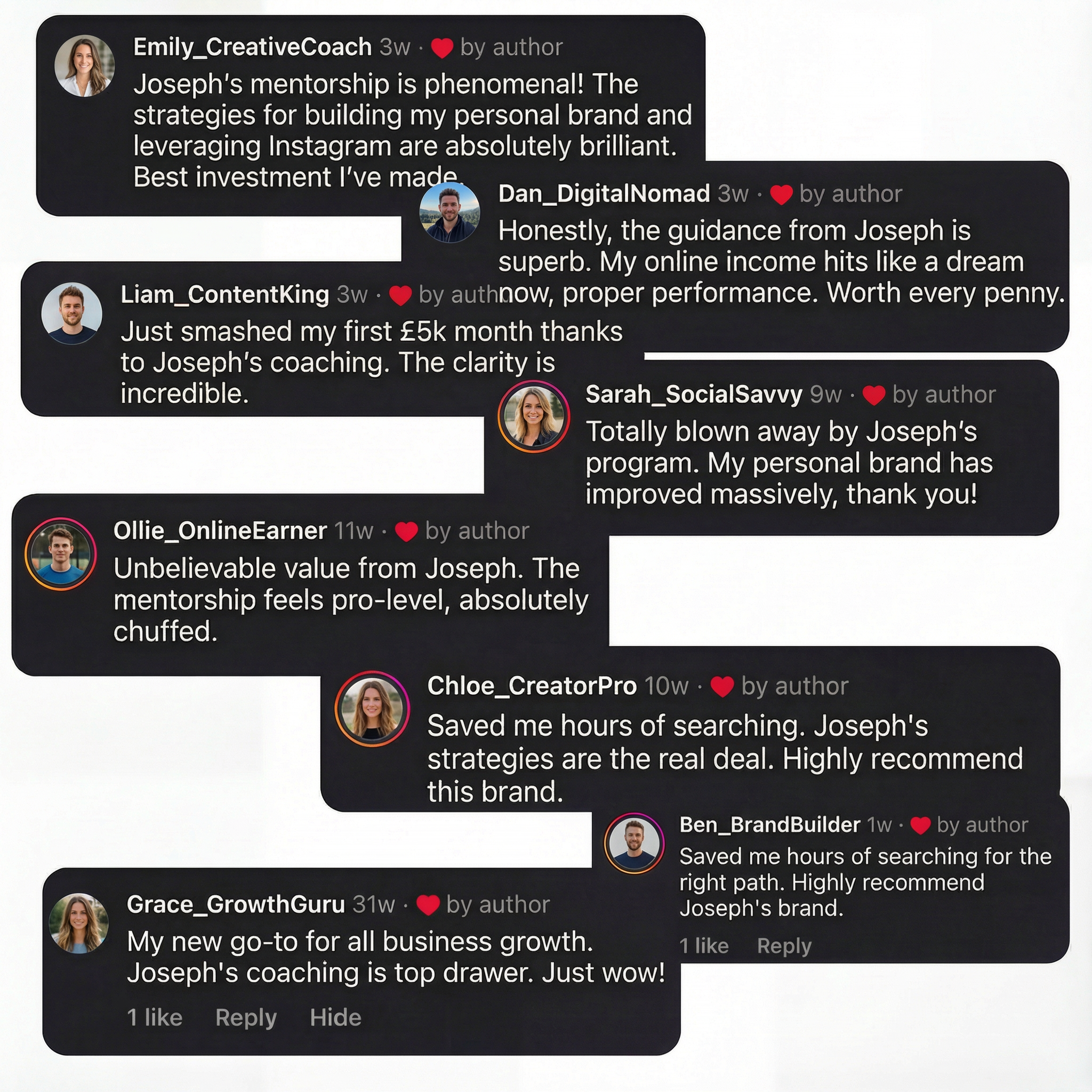 "Posting online used to genuinely scare me. I’d overthink everything, worry about what people would say, and end up posting nothing. Working with Joseph helped me realise it didn’t need to be perfect. He broke it down, gave me a simple structure, and more importantly, the confidence to just show up. I’m now posting consistently." - Hannah Price